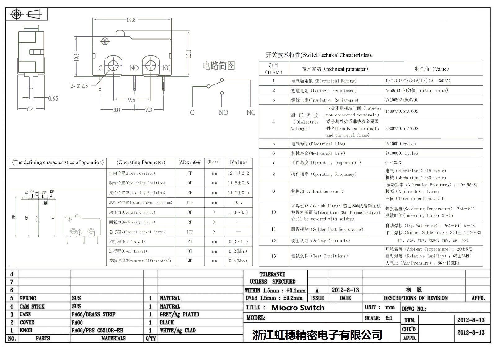 微动开关电气特性