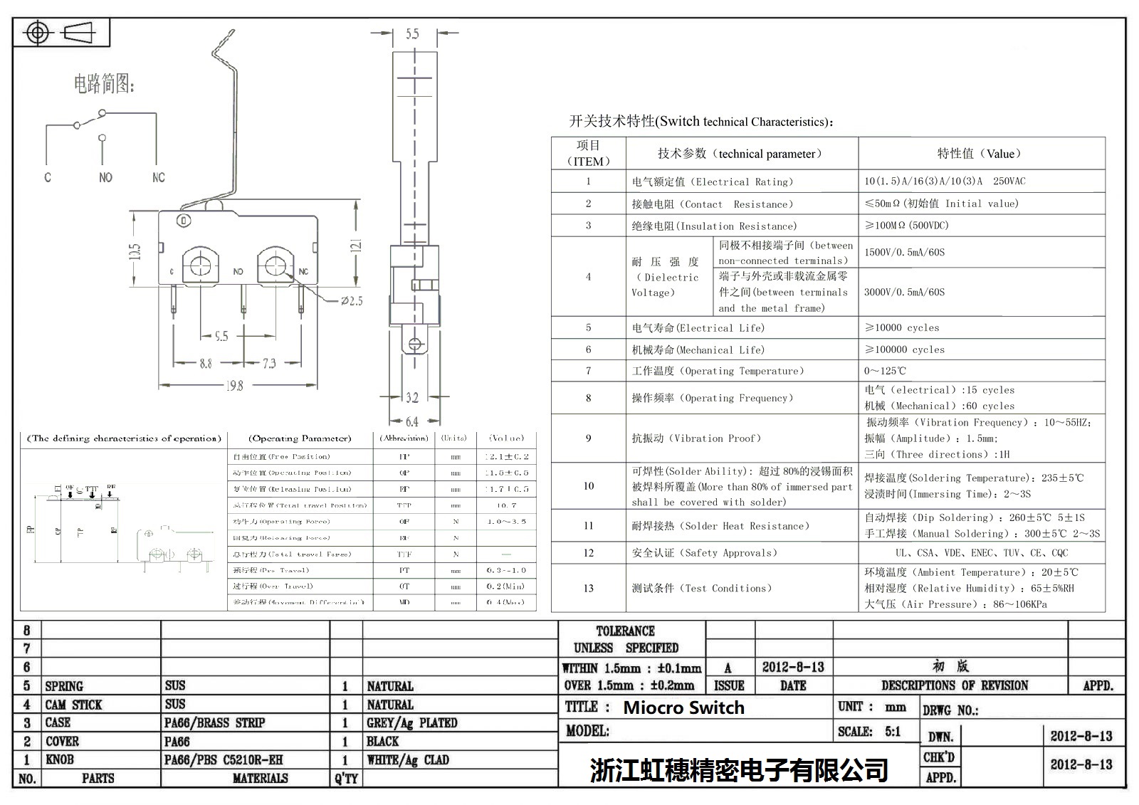 微动开关电气特性