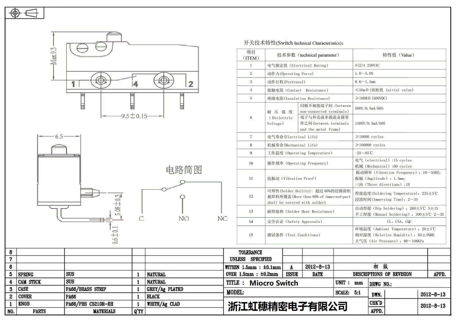 微动开关电气特性