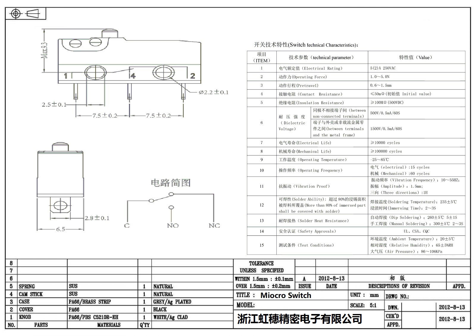 微动开关电气特性