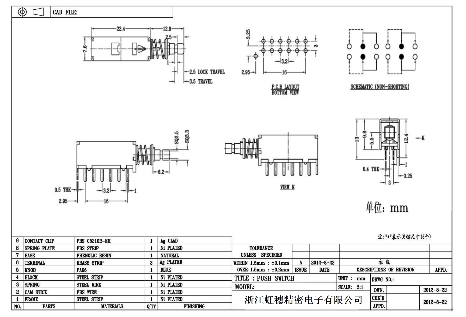 侧按直键开关技术指标
