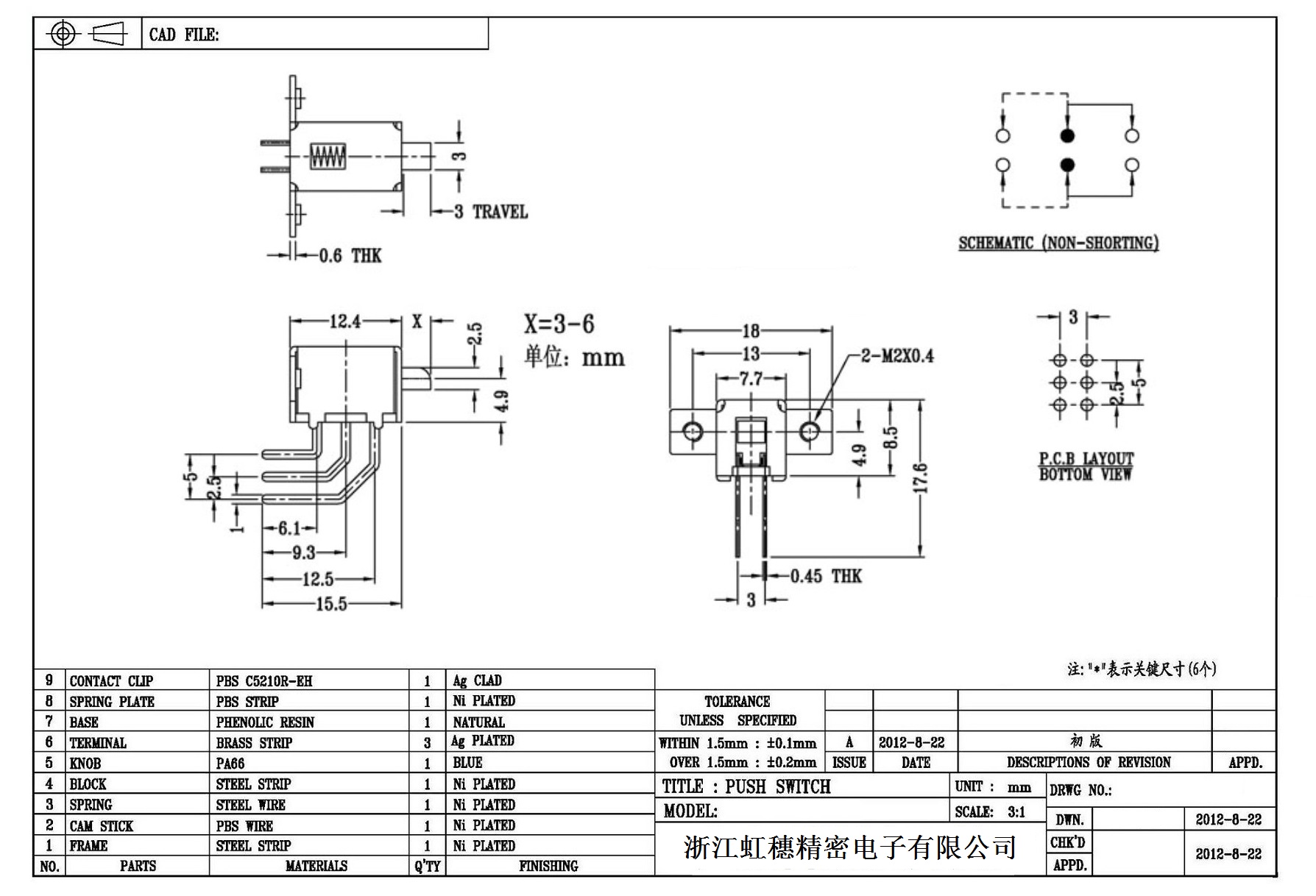 侧按直键开关技术指标