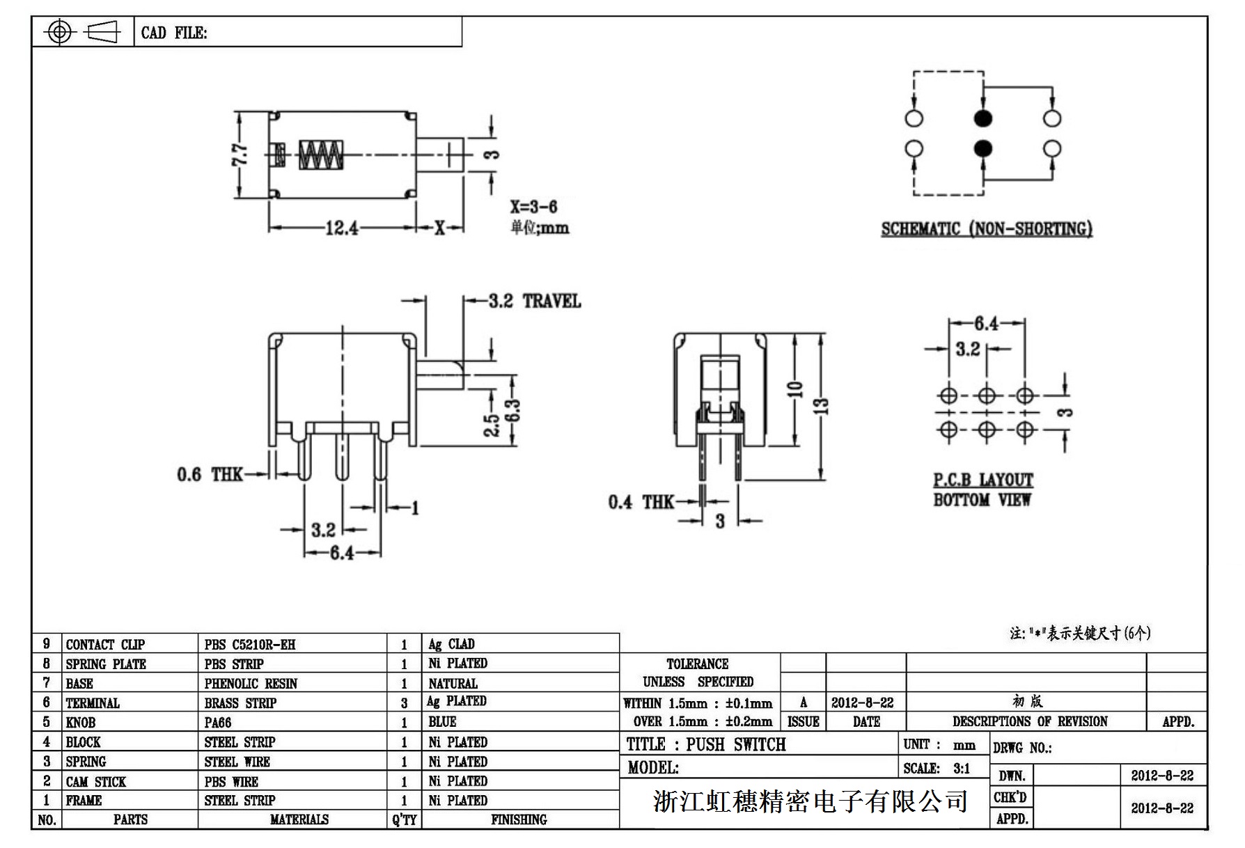 7. 操作力 : 160gf 可订做