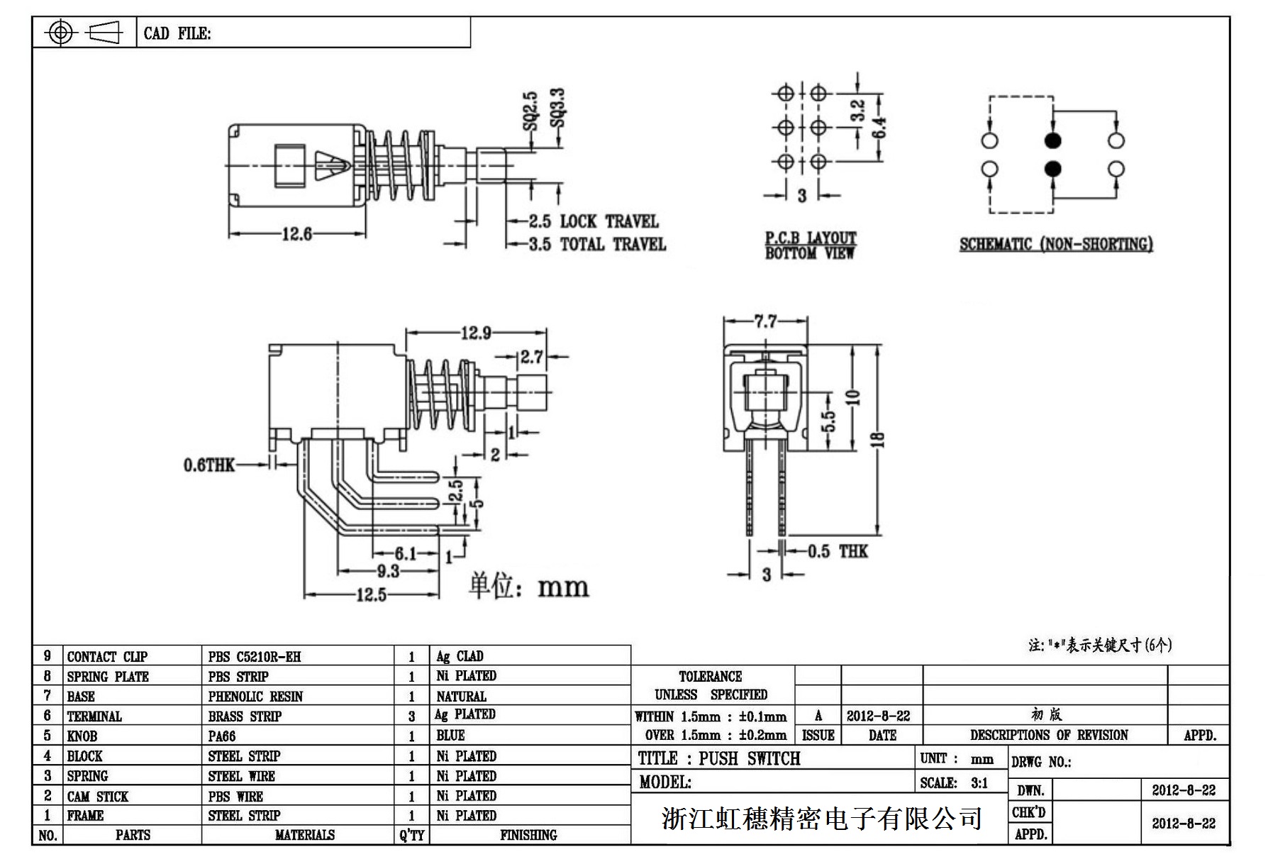 侧按直键开关技术指标