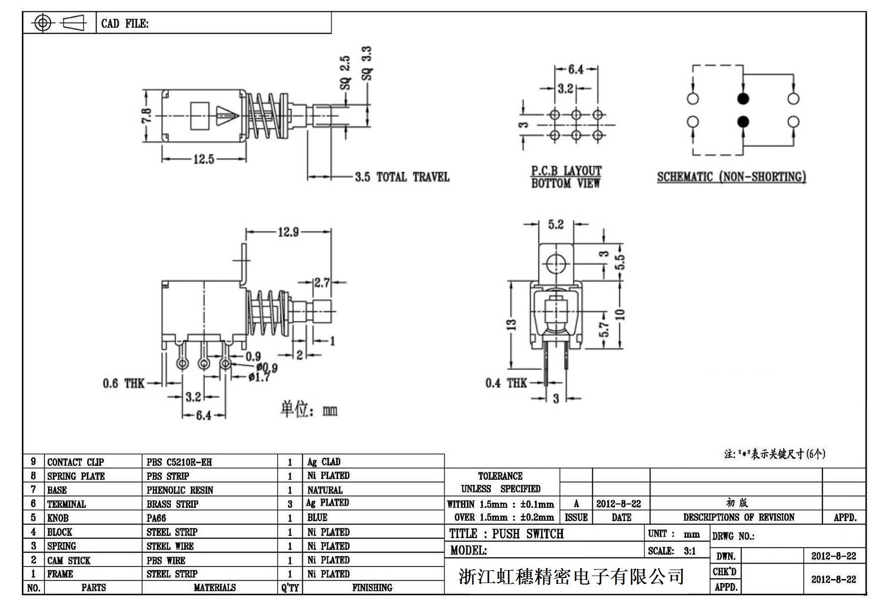 3. 绝缘阻抗: ≥100mΩ DC500V