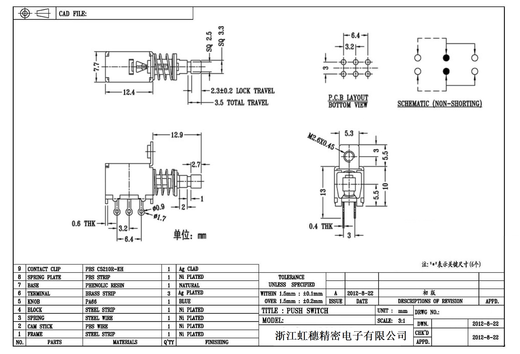 3. 绝缘阻抗: ≥100mΩ DC500V