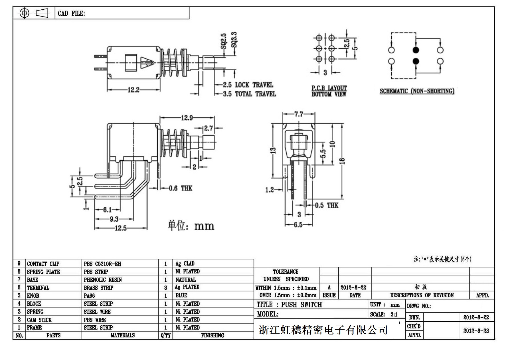 侧按直键开关技术指标