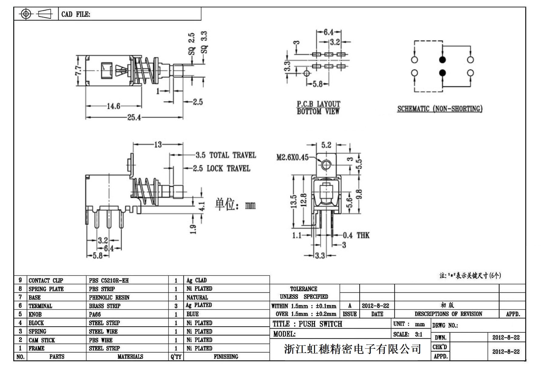 侧按直键开关技术指标