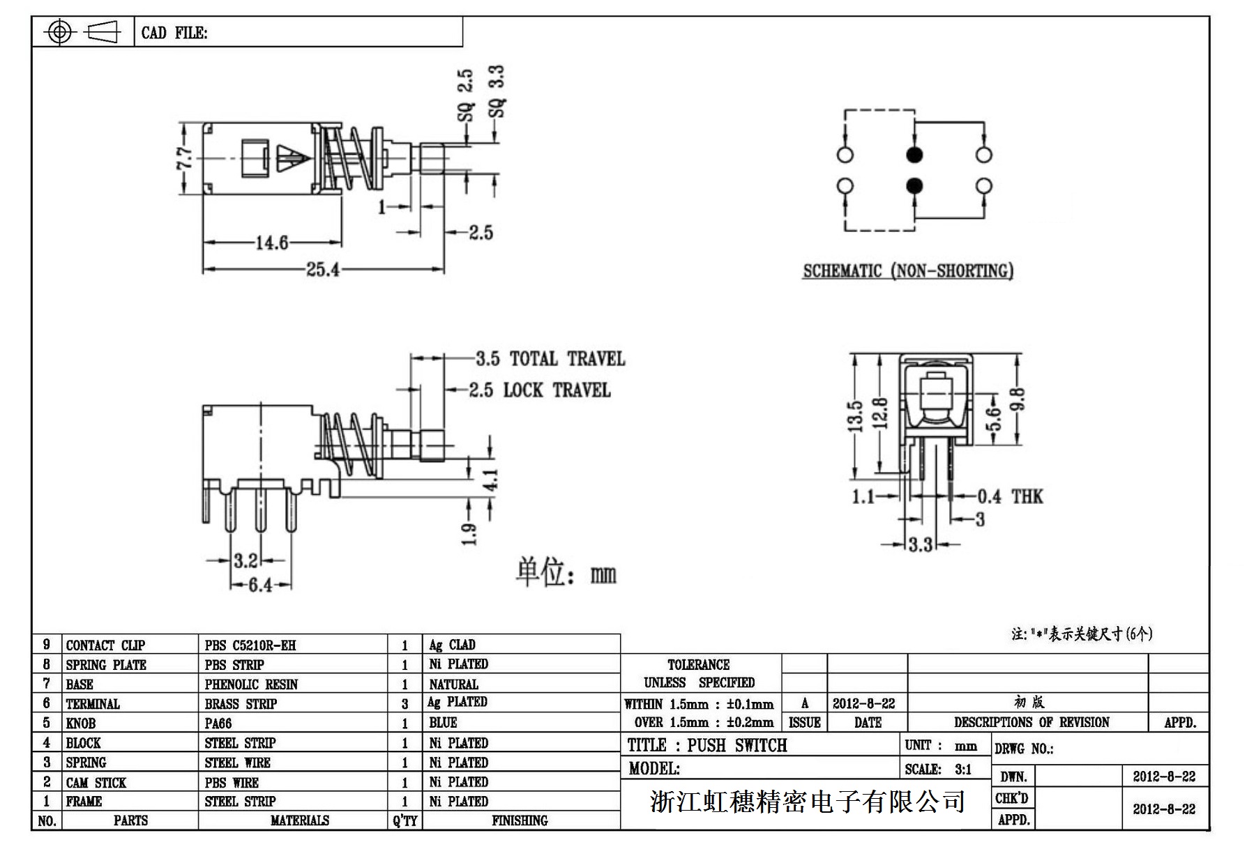 3. 绝缘阻抗: ≥100mΩ DC500V