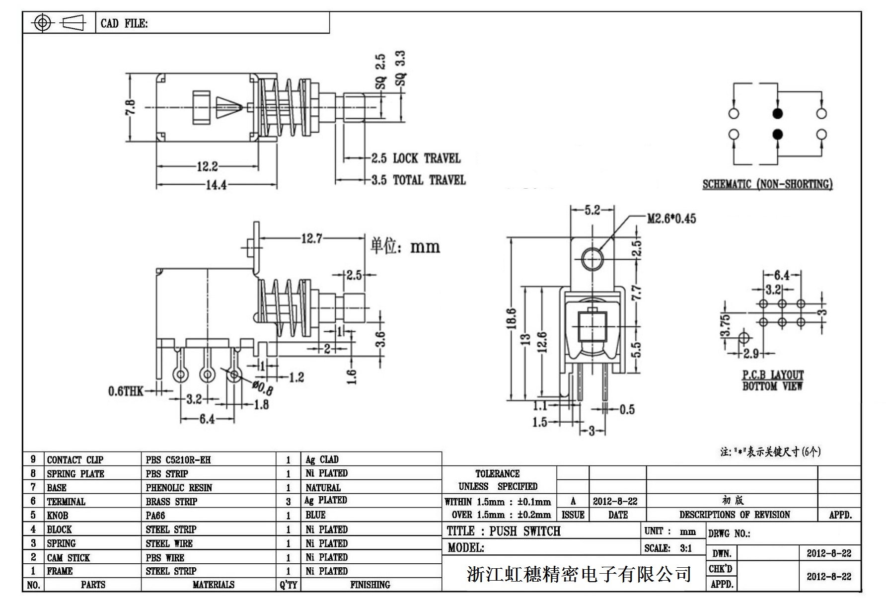 3. 绝缘阻抗: ≥100mΩ DC500V