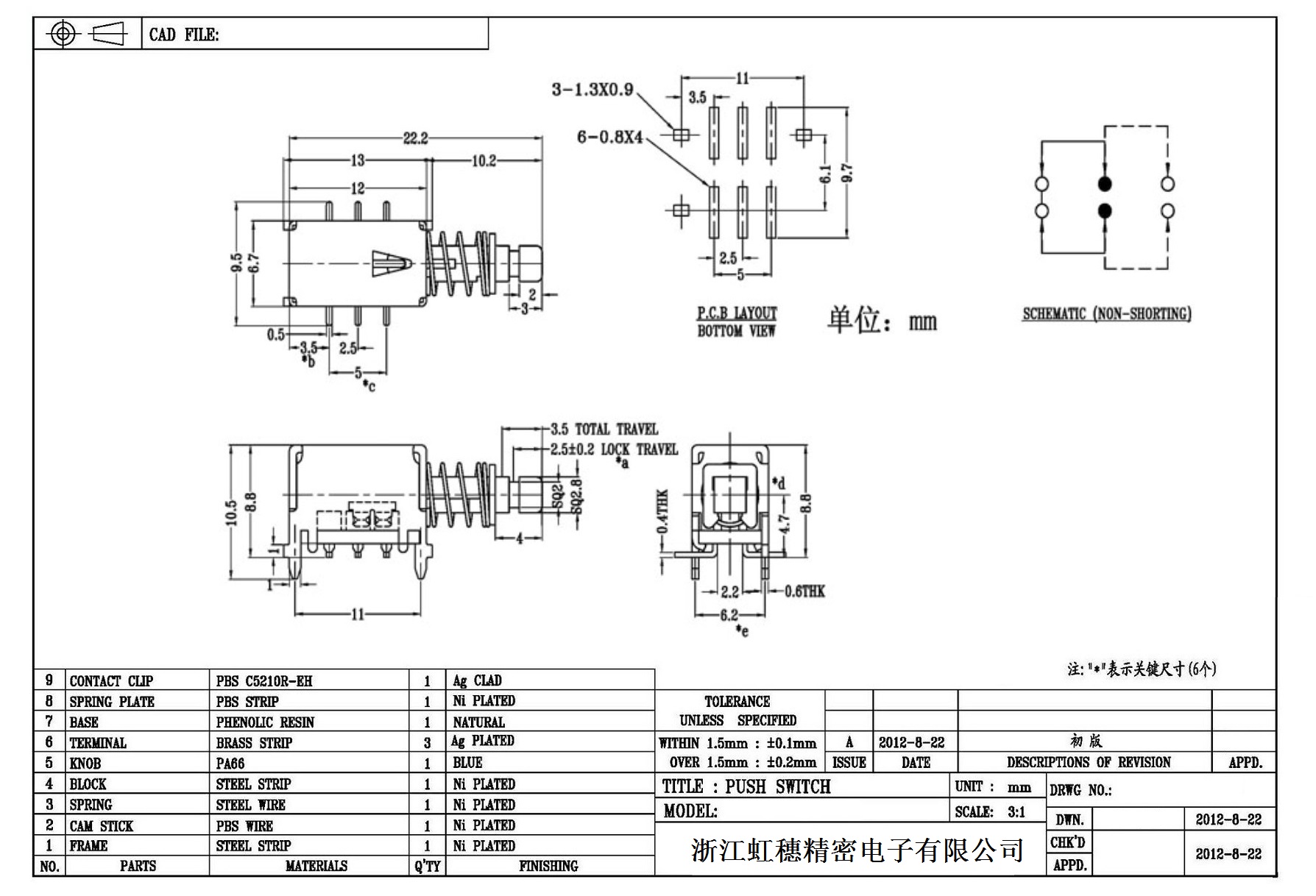 3. 绝缘阻抗: ≥100mΩ DC500V