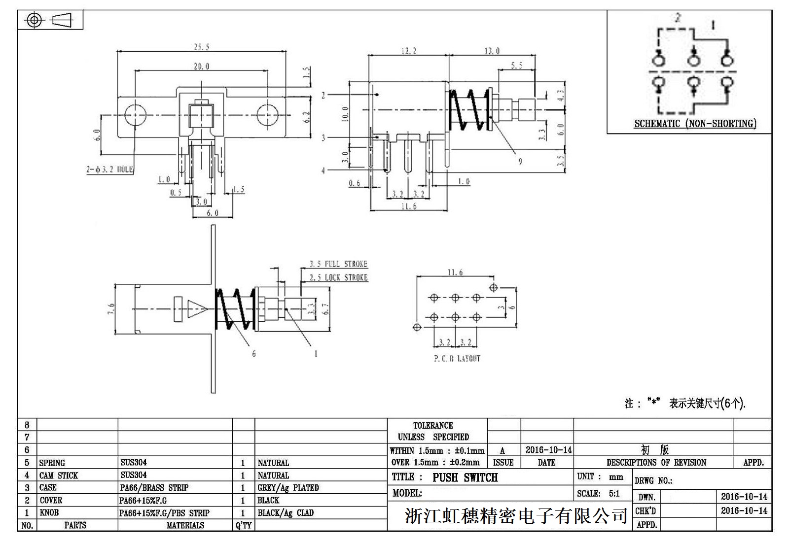 3. 绝缘阻抗: ≥100mΩ DC500V