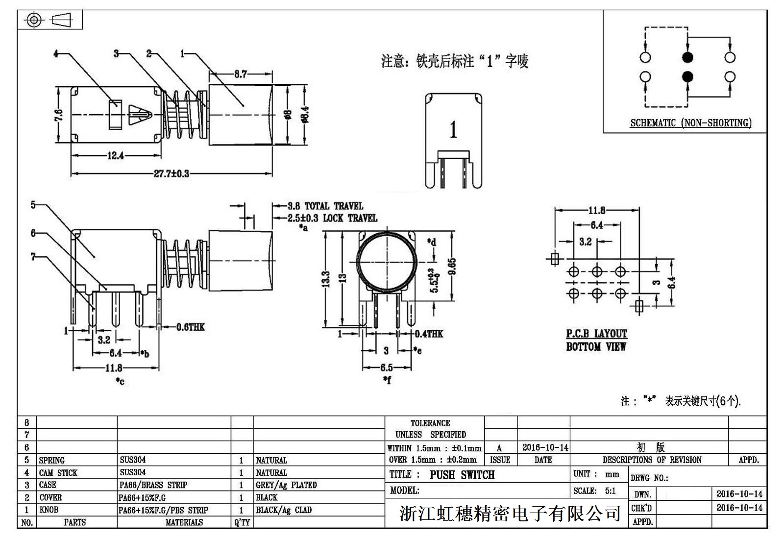 3. 绝缘阻抗: ≥100mΩ DC500V