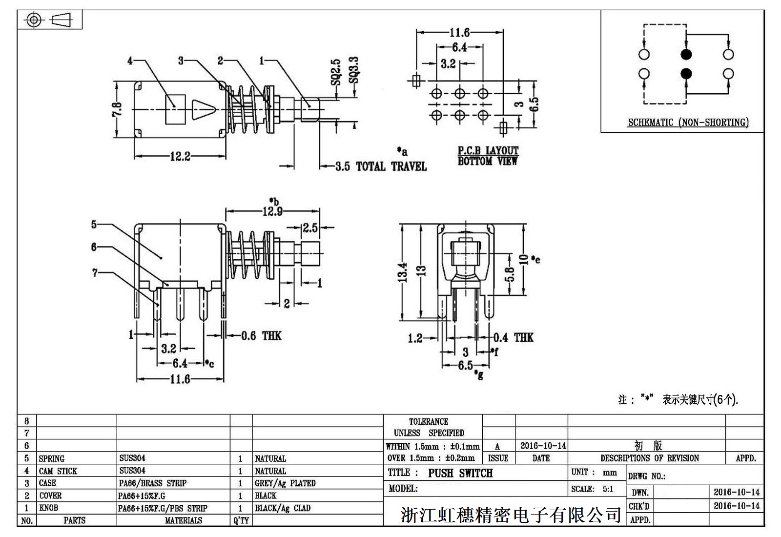 Self-Locking Switch /  Puhs Button switch technical indicators
