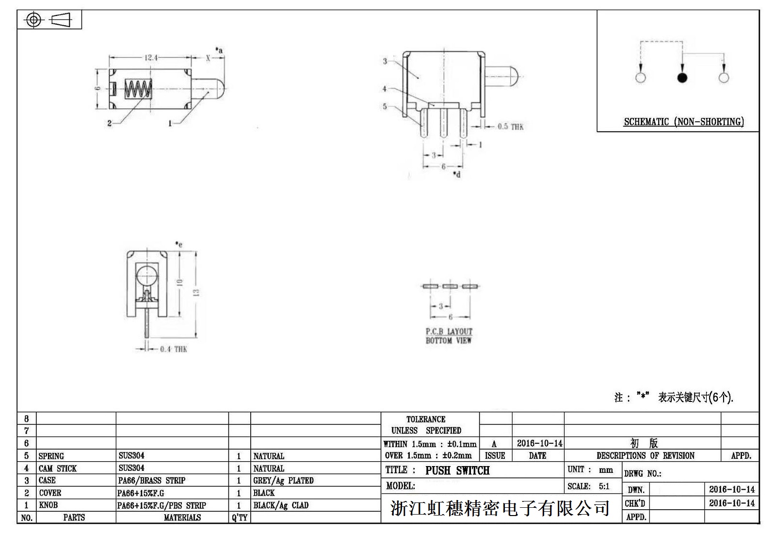 7. 操作力 : 160gf 可订做
