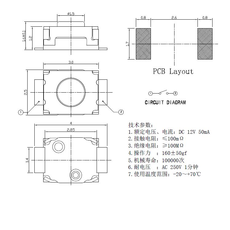 7. 使用湿度: ≤85% RH 8. 使用寿命: 100000次