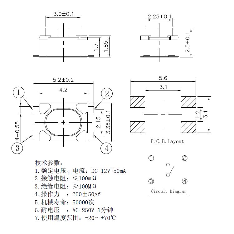 7. 使用湿度: ≤85% RH 8. 使用寿命: 50000次
