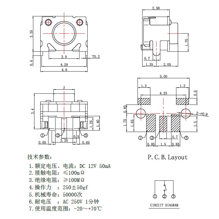 轻触开关技术参数: