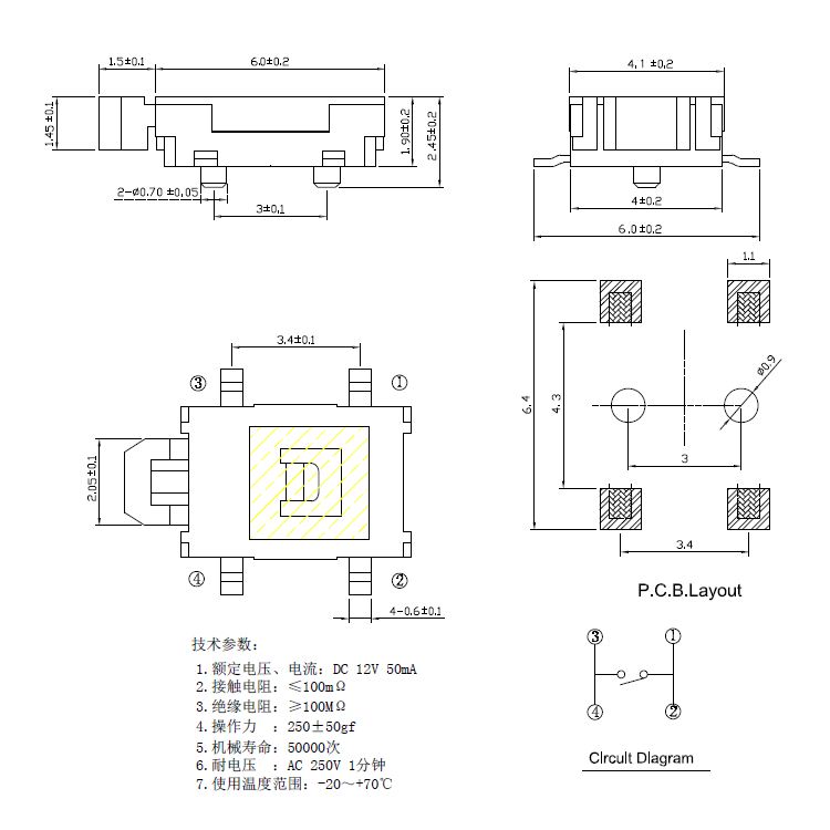 轻触开关技术参数: