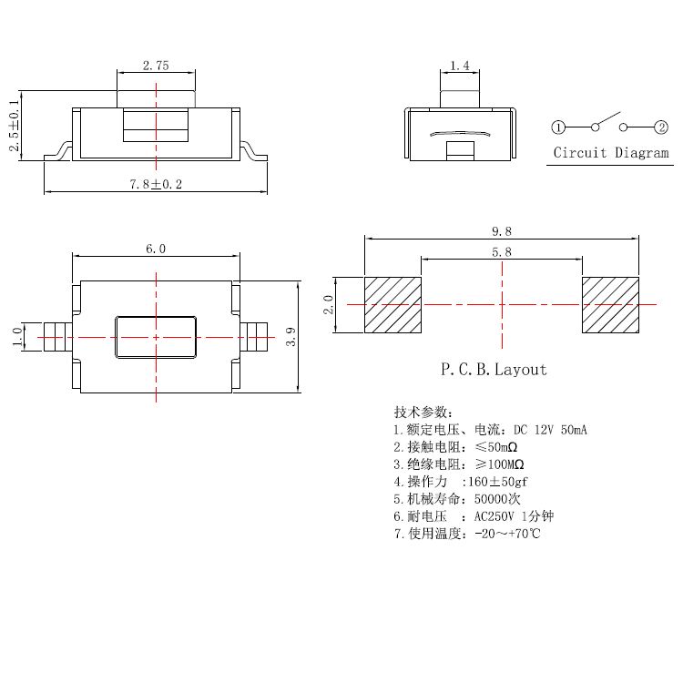 轻触开关技术参数: